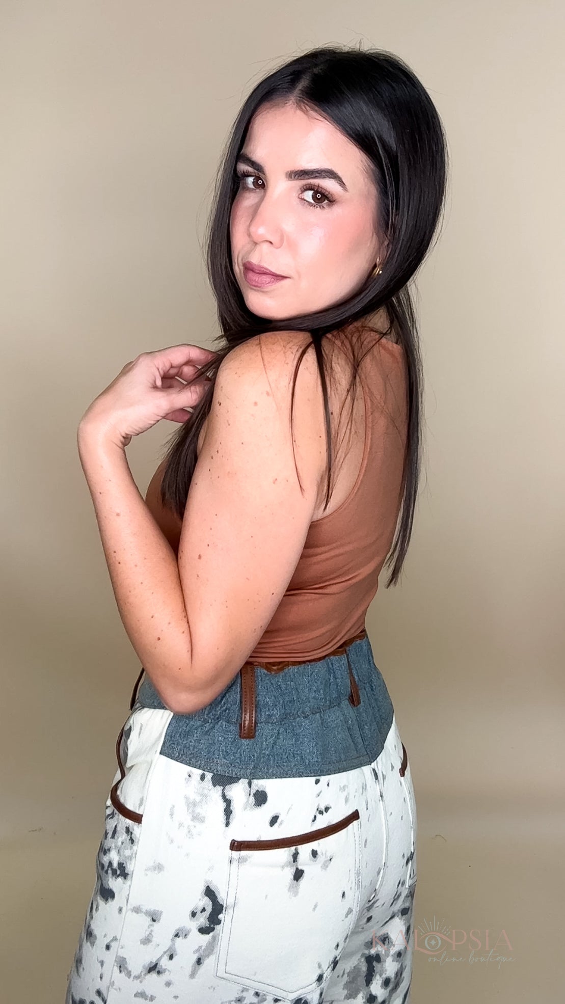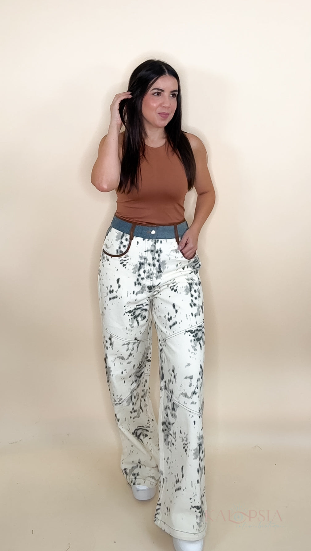 • Load image into Gallery viewer, Cow Print Denim Pants