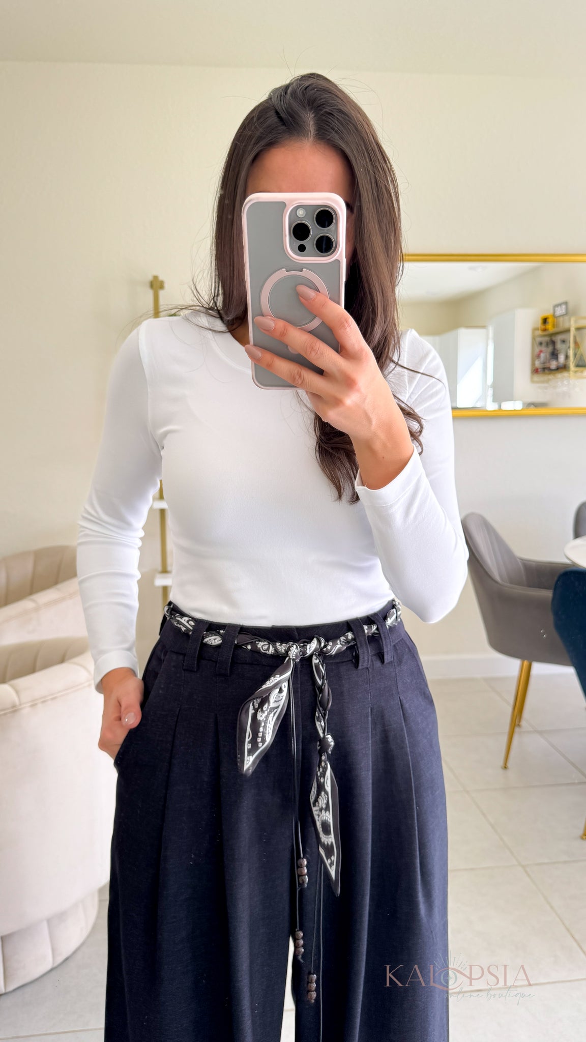 Belt included. Runs true size. Model is wearing a Small size and her measurements are: Waist: 30 inches and Hips: 38 inches.