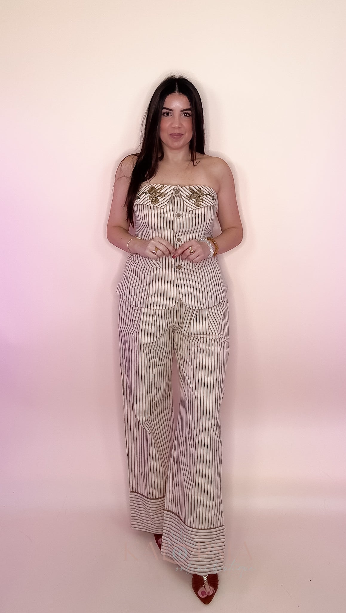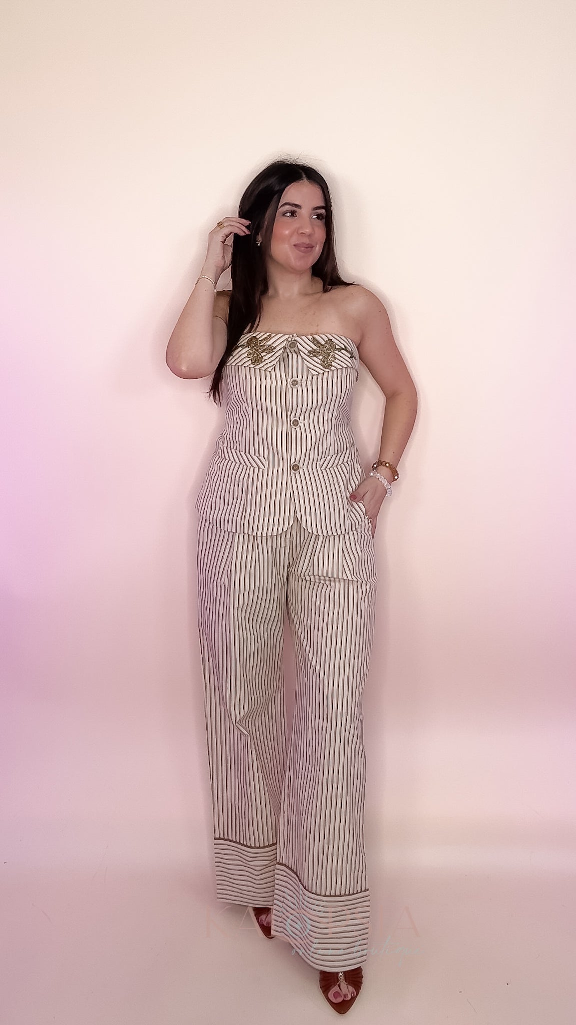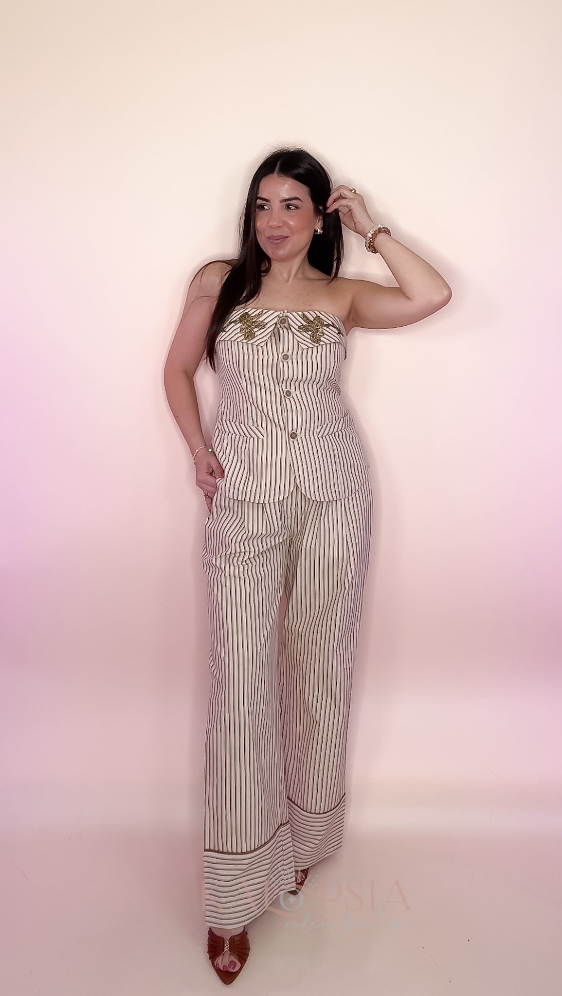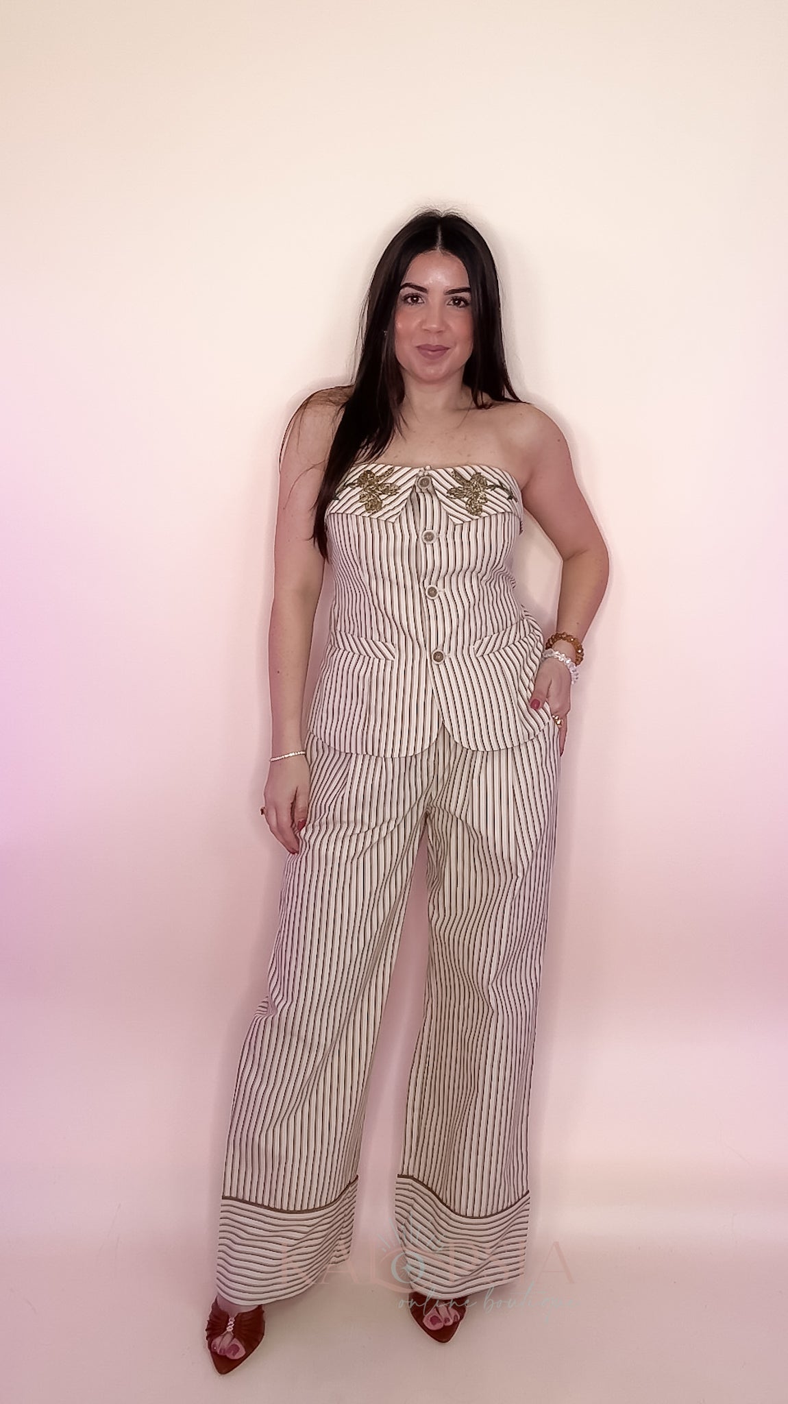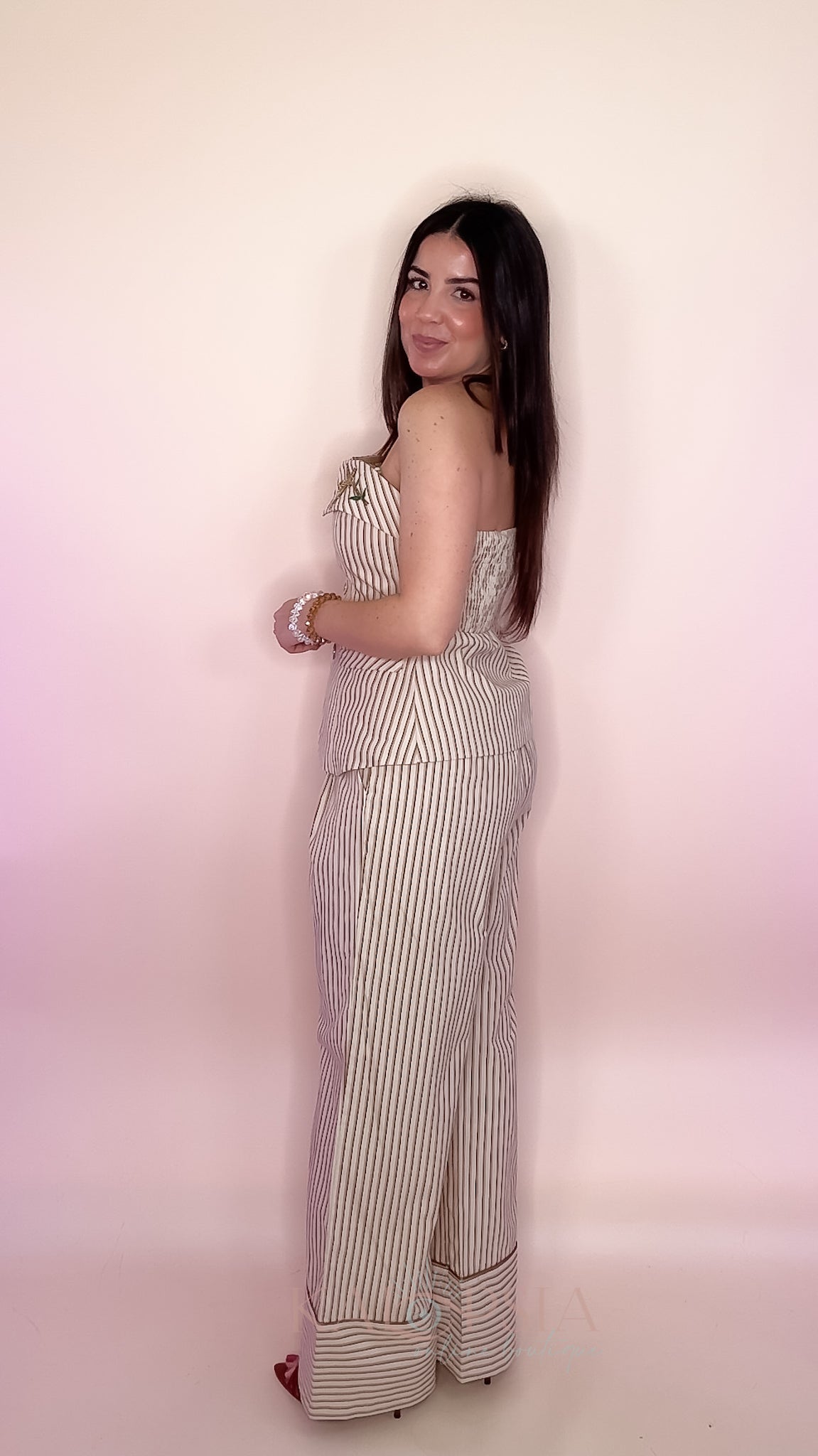 Runs true to size. With elastic waist and removable strips.