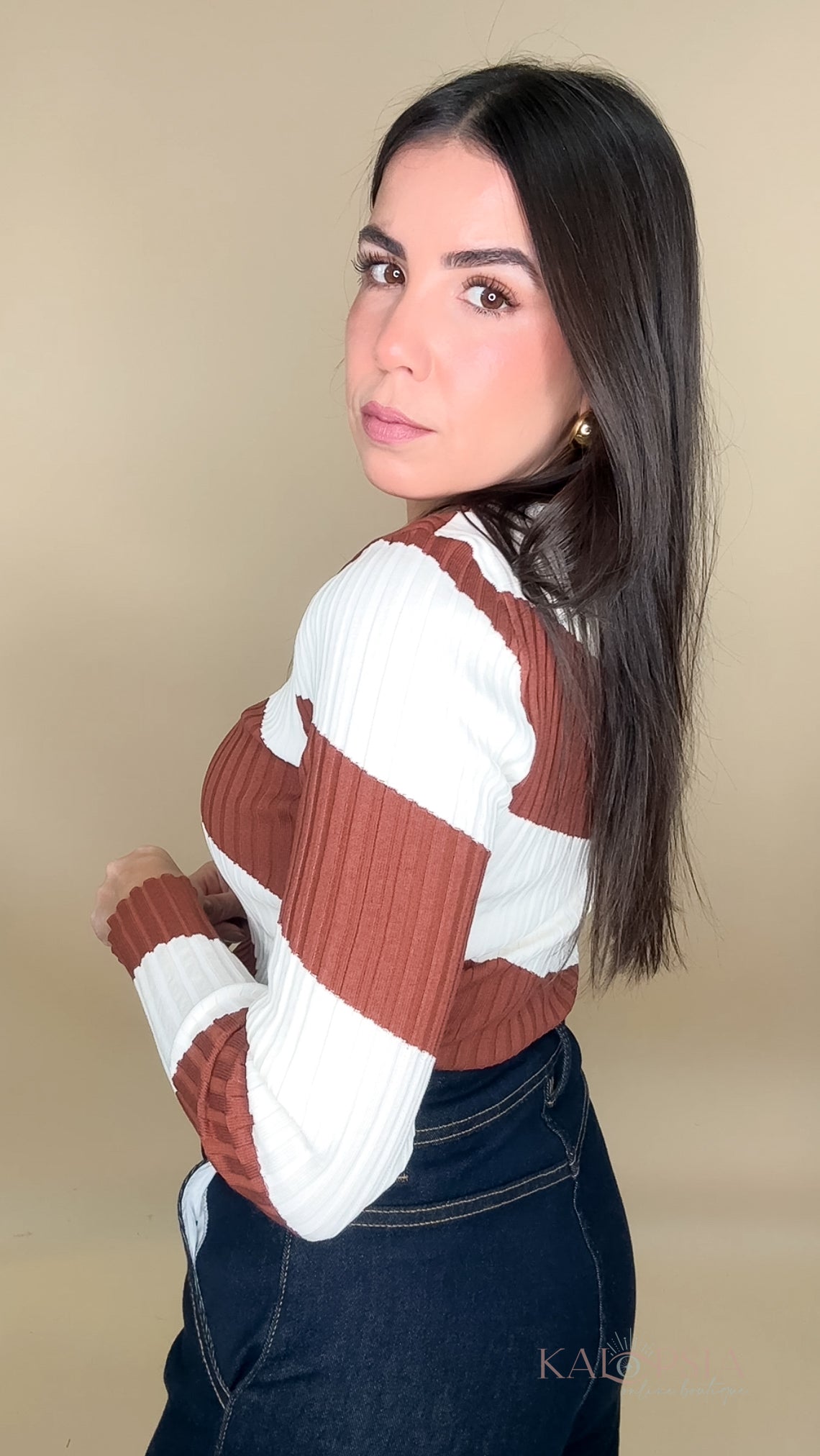 Felicity Long Sleeve Top - Brown