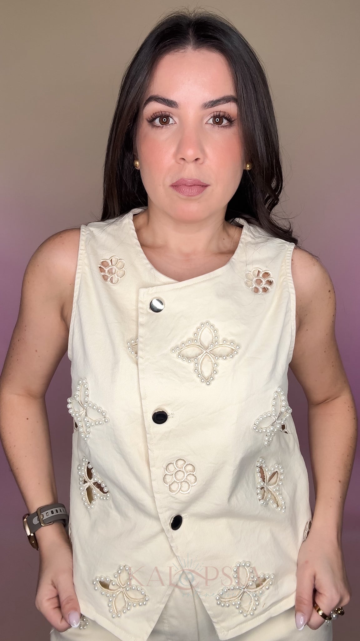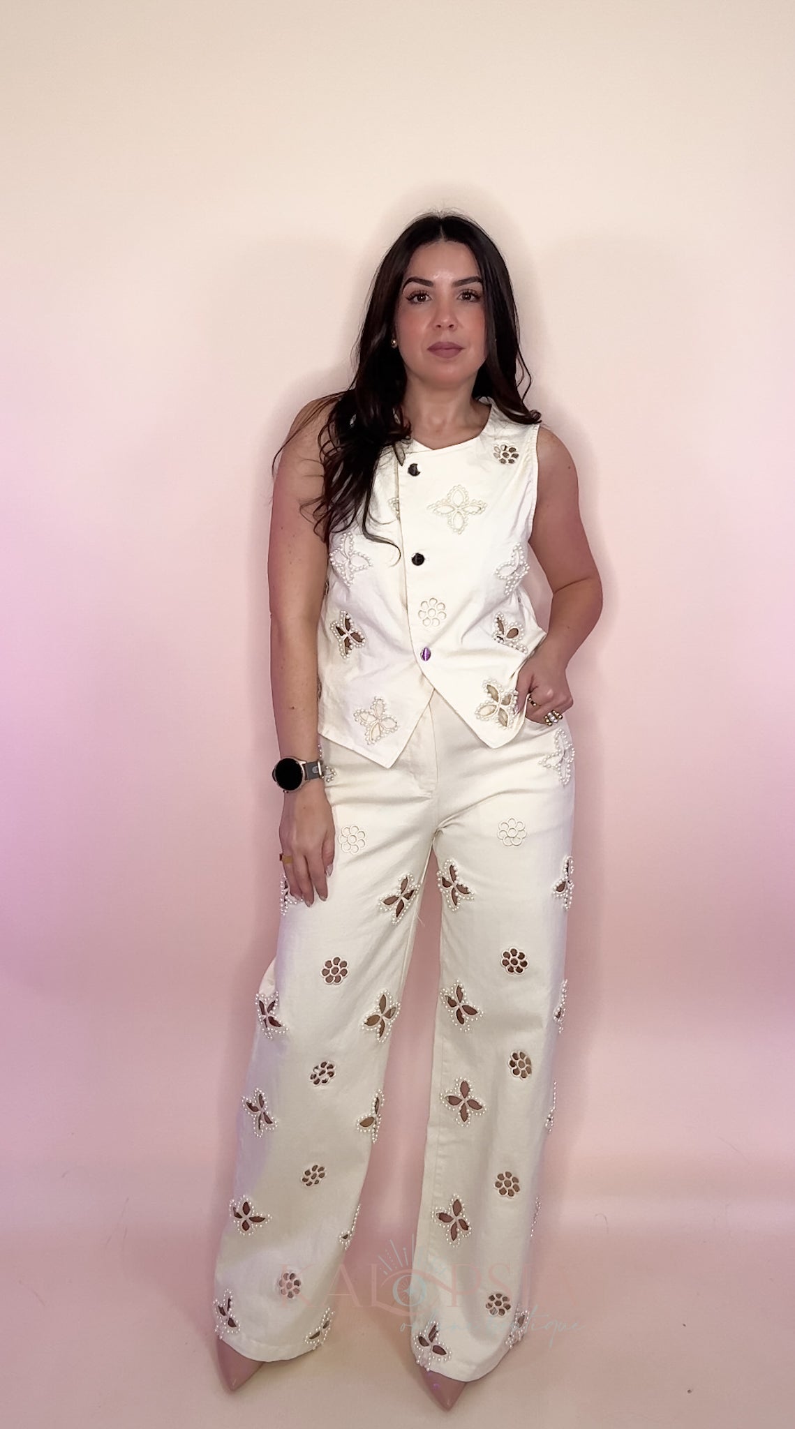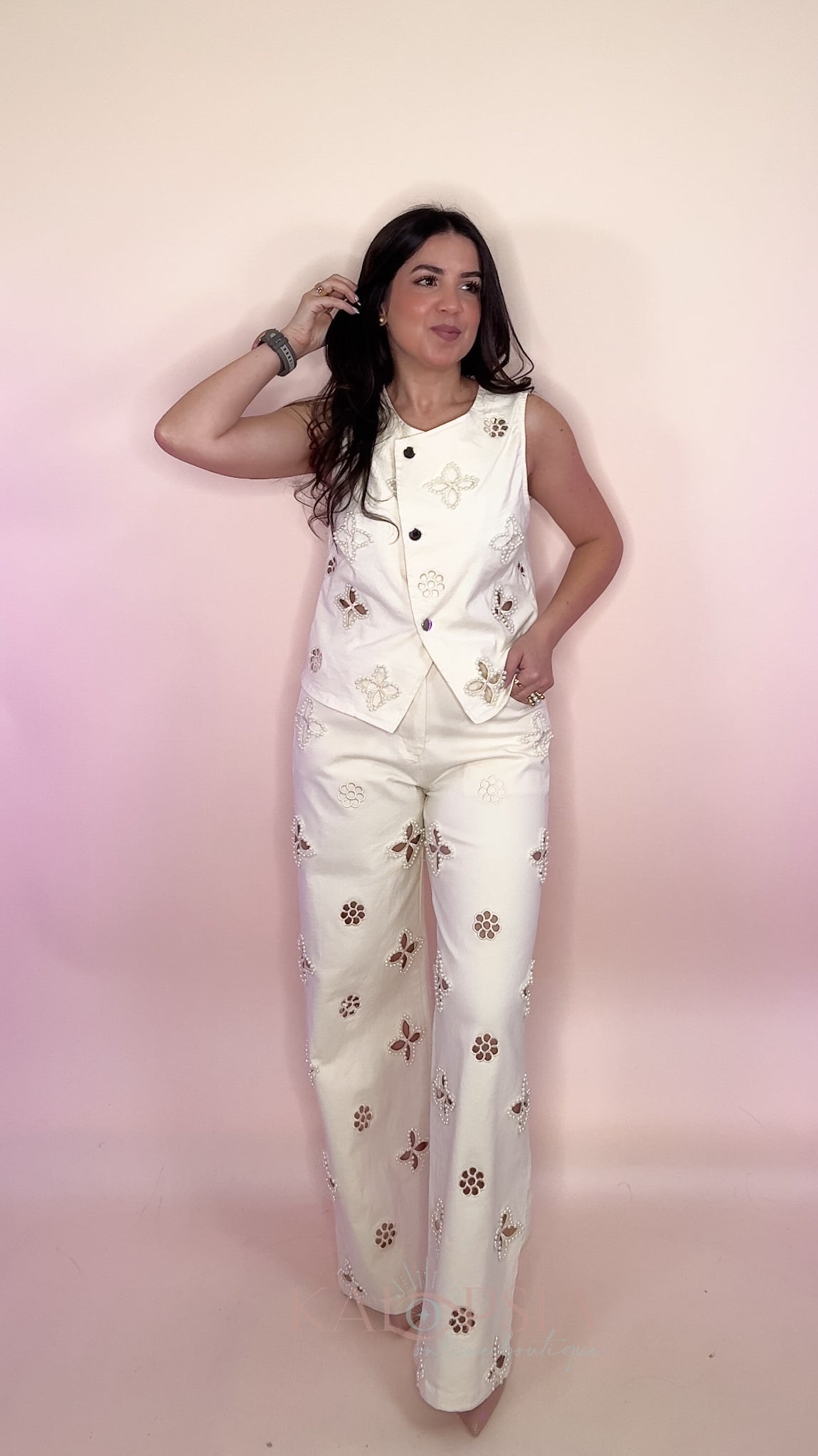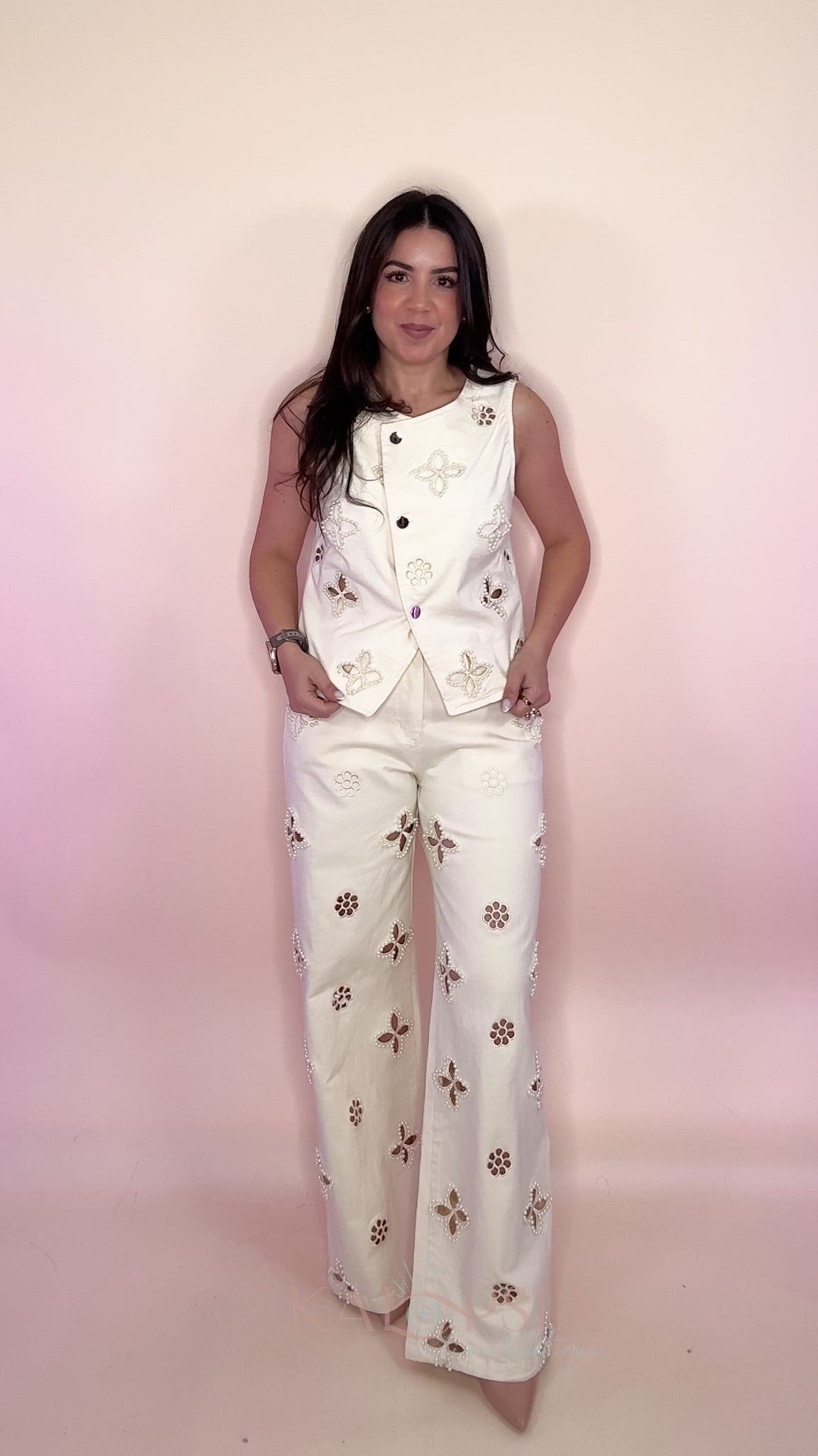 Embroidered Pearls Denim Set