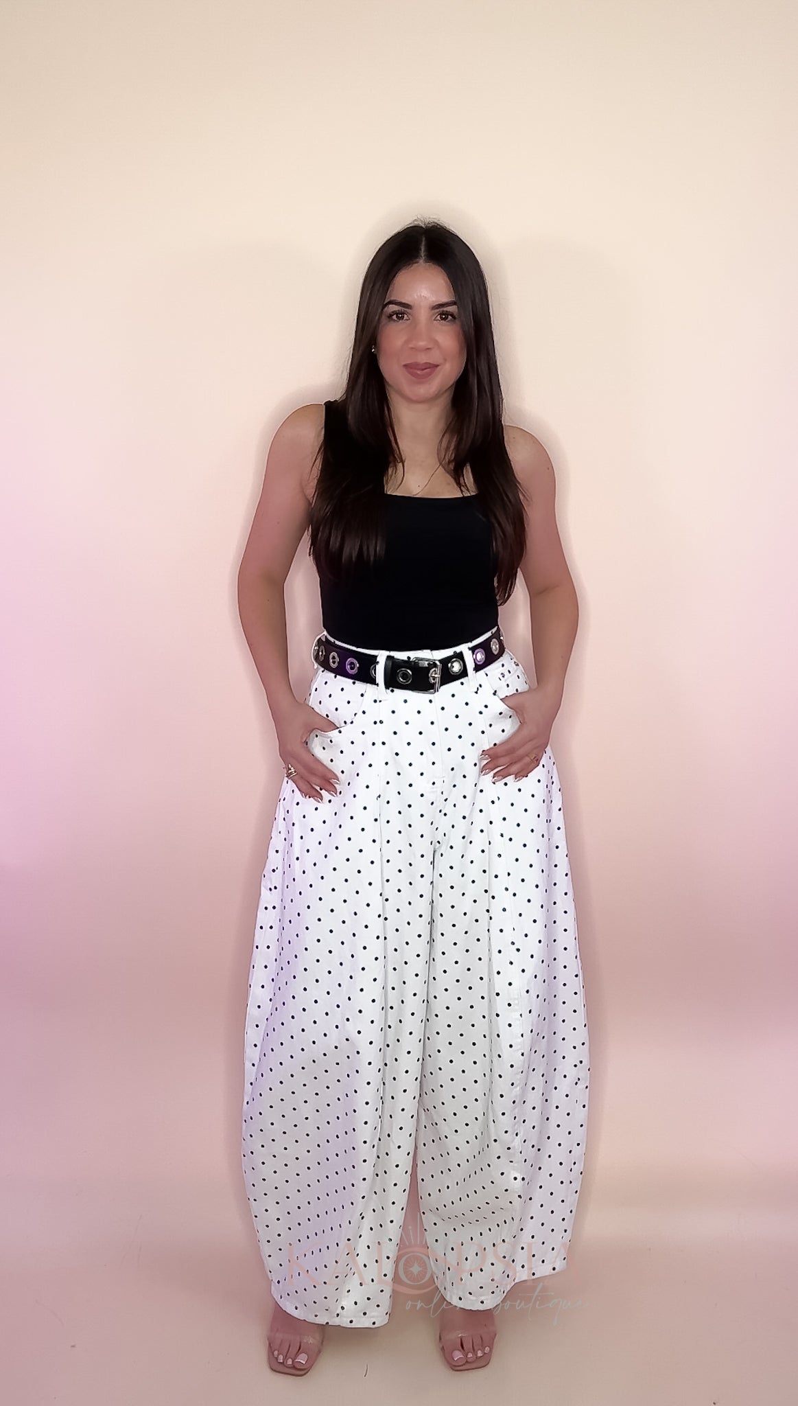 Runs true size. No spandex. Model is wearing a Small size and her measurements are: Waist: 30 inches and Hips: 38 inches.